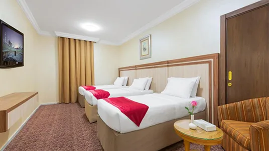 Verta Madina Hotel in Medina provides family-friendly accommodations featuring air conditioning, en-suite bathrooms with showers and bidets, flat-screen TVs, and electric kettles. Guests can stay connected with complimentary WiFi available across the property. The hotel offers 24-hour front desk assistance, room service, and paid on-site parking. A daily buffet breakfast is available for guests. The reception staff is multilingual, fluent in Arabic, English, Turkish, and Urdu. Conveniently located just 14 km from Prince Mohammad bin Abdulaziz International Airport, the hotel is only a 9-minute walk from Al-Masjid an-Nabawi. Popular nearby landmarks include Quba Mosque (5 km away) and Mount Uhud (8 km away).