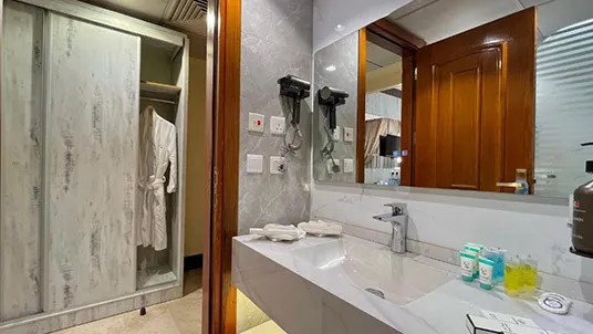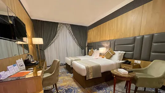 Grand Makkah Hotel, a 5-star property, is popular for its clear views of Al Muallah graveyard and Jabal-e-Noor, and it’s just a 10-minute walk from the Holy Haram. The rooms are modern and comfortable, featuring air conditioning, a flat-screen TV, mini fridge, and coffee and tea facilities, plus dining service for your convenience. With a 24-hour front desk ready to assist, guests can also enjoy the hotel’s Zamzam Café, fitness center, and business center during their stay.