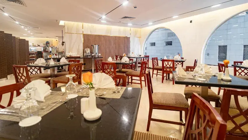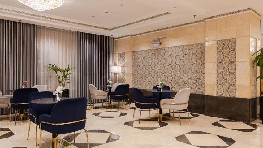 Emaar Grand Hotel, just 750 meters from the Holy Haram on bustling Ibrahim Al Khalil Street in Mecca, offers stylish rooms and a restaurant with 24-hour room service. The rooms feature blue carpets, tiled floors, and elegant furnishings, along with air conditioning, a wardrobe, and satellite TV. Many restaurants and shops are just a short walk from the hotel, and King Abdul Aziz International Airport can be reached in about an hour by car. Couples love the convenient location, giving it an 8.0 rating for a two-person stay.