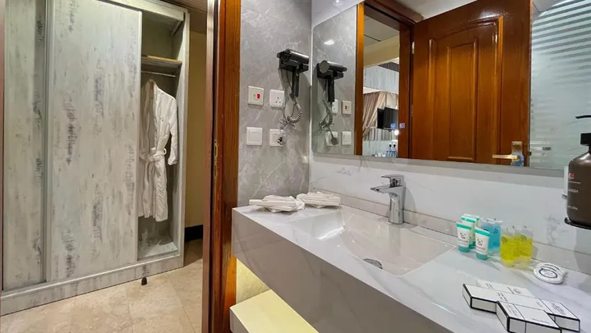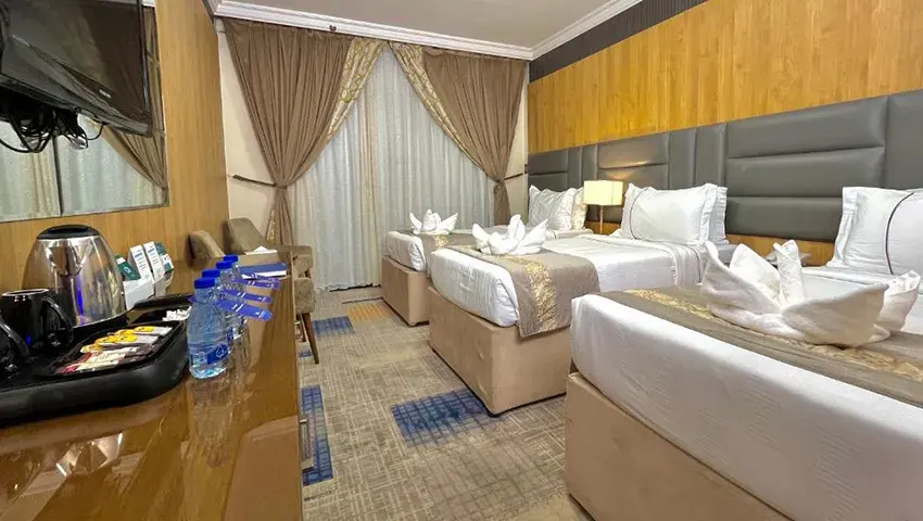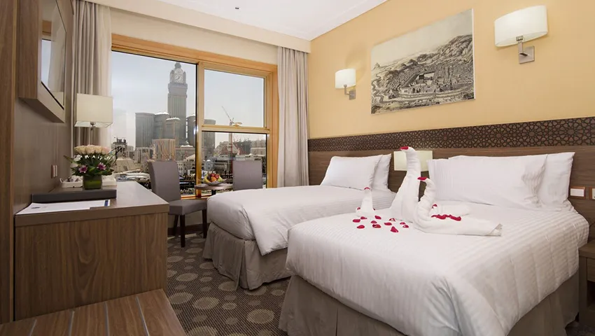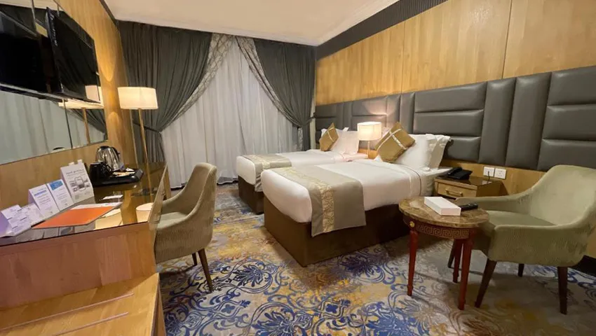 Grand Makkah Hotel, a 5-star property, is popular for its clear views of Al Muallah graveyard and Jabal-e-Noor, and it’s just a 10-minute walk from the Holy Haram. The rooms are modern and comfortable, featuring air conditioning, a flat-screen TV, mini fridge, and coffee and tea facilities, plus dining service for your convenience. With a 24-hour front desk ready to assist, guests can also enjoy the hotel’s Zamzam Café, fitness center, and business center during their stay.