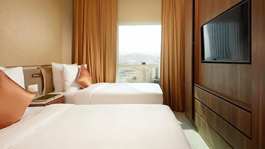 Shaza Makkah, nestled in the modern Jabal Ka’aba development close to the Holy Mosque and city center, offers guests spectacular views of Al Masjid Al Haram. With 251 elegantly appointed guestrooms and suites, the hotel blends comfort with luxury, offering amenities such as complimentary WiFi, flat-screen TVs, rain showers, signature toiletries, hairdryers, in-room safes, coffee and tea facilities, 24-hour room service, and laundry options. For a heightened level of tranquility, the exclusive Shaza Silk Floors feature premium rooms and suites, including Makkah’s pioneering nonsmoking floor for a serene, upscale experience.