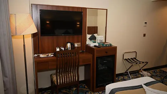Rua International Hotel is a luxurious 3-star accommodation located just 100 meters from Al-Masjid an-Nabawi in the heart of Central Madinah. Offering complimentary Wi-Fi throughout the property and 24-hour front desk service, the hotel ensures a comfortable and connected stay. Guests are welcomed into well-appointed rooms featuring air conditioning, large flat-screen TVs with satellite channels, cozy beds with plush pillows, private bathrooms stocked with free toiletries, a wardrobe, minibar, electric kettle, and more. The on-site restaurant serves a variety of Arabic and international dishes, while nearby attractions include Al Baqia Cemetery (a 12-minute walk), Old Bazaar (10 minutes on foot), and Madina Mall (just 2 km away). Rua International is conveniently situated 14 km from Prince Mohammed Bin Abdulaziz International Airport and also provides amenities such as a safety deposit box, wheelchair access, housekeeping, laundry service, luggage storage, and more to ensure a pleasant experience for every guest.