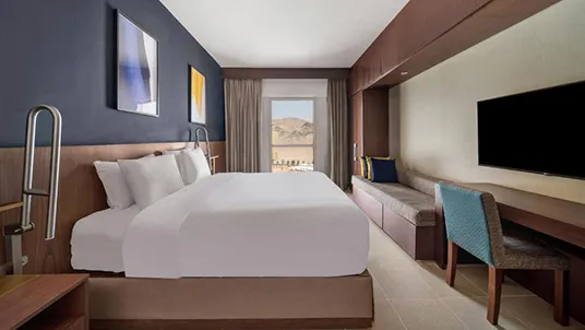 Just 1.3 km from Masjid Al-Haram, voco Makkah, part of IHG Hotels, offers comfortable stays with amenities including a restaurant, shared lounge, paid private parking, and free WiFi across the property. Guests benefit from a 24-hour reception, complimentary shuttle transfers to the Haram, and room service. The well-appointed rooms come with air conditioning, a satellite flat-screen TV, an electric kettle, a wardrobe, and private bathrooms complete with bath, shower, hairdryer, and toiletries. A continental breakfast is served daily, while local highlights such as Hira Cave lie 10 km away. The nearest airport, King Abdulaziz International, is located 99 km from the hotel.