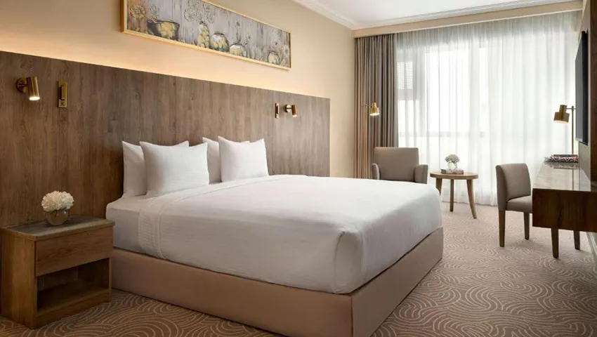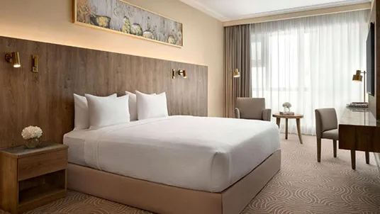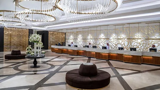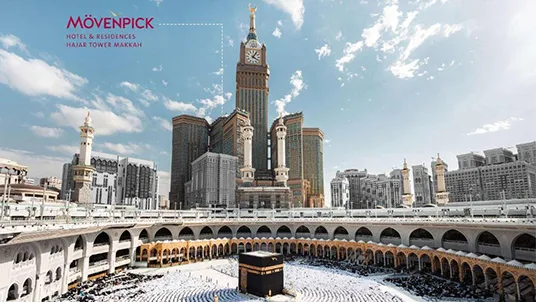 Situated in the heart of Makkah near the Grand Mosque, Mövenpick Hotel & Residence combines comfort and convenience with its contemporary wooden décor and welcoming atmosphere. Guests benefit from complimentary WiFi, access to on-site shops, and a variety of fine dining options. The well-appointed rooms include essentials such as LCD TVs, minibars, and coffee makers, making the hotel an ideal base for pilgrims visiting the Holy Haram.