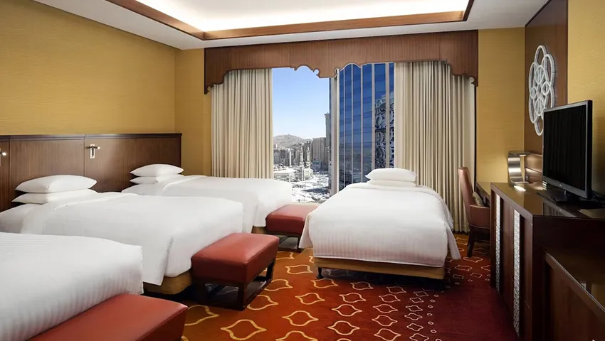 This 5-star hotel in Makkah is ideally situated just a 6-minute walk from the Holy Haram, offering guests modern, air-conditioned accommodations with flat-screen TVs, stylish interiors, and separate seating areas. Guests can enjoy dining at the on-site restaurant, take advantage of 24-hour front desk assistance, and benefit from thoughtful amenities such as complimentary breakfast and a free shuttle service, ensuring a comfortable and convenient stay during their holy journey.