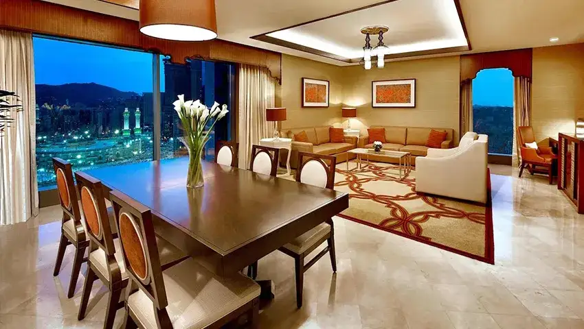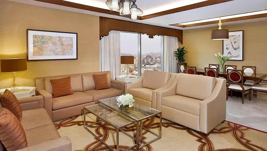 This 5-star hotel in Makkah is ideally situated just a 6-minute walk from the Holy Haram, offering guests modern, air-conditioned accommodations with flat-screen TVs, stylish interiors, and separate seating areas. Guests can enjoy dining at the on-site restaurant, take advantage of 24-hour front desk assistance, and benefit from thoughtful amenities such as complimentary breakfast and a free shuttle service, ensuring a comfortable and convenient stay during their holy journey.