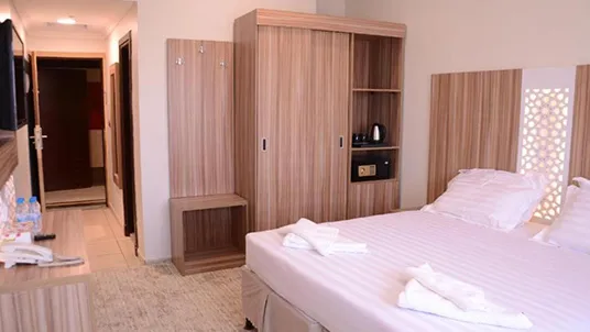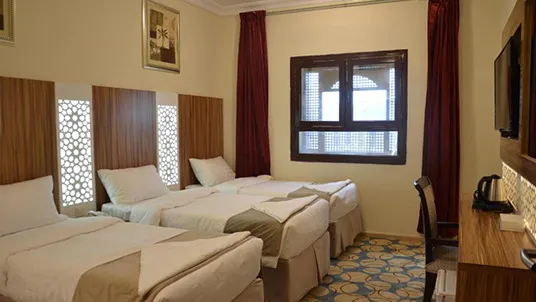 Just an 8-minute walk from Al-Masjid an-Nabawi, Artal International Hotel offers travelers a convenient and comfortable stay in Al Madinah, only 7.5 miles from Prince Mohammad bin Abdulaziz International Airport. The hotel provides free WiFi, private check-in/check-out, 24-hour reception, and elevators for easy access. Whether you're visiting with family or on business, you'll find spacious family rooms, a fully equipped business center, and a welcoming on-site coffee shop. Additional perks include a minimarket, daily housekeeping, room service, and bicycle parking. Each room comes with a work desk and shower. Guests can also explore nearby landmarks such as the Qiblatain Mosque, Mount Uhud, and Jabal Ahad Garden Park.