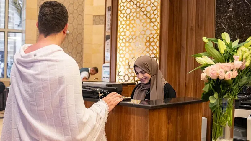 Emaar Grand Hotel, just 750 meters from the Holy Haram on bustling Ibrahim Al Khalil Street in Mecca, offers stylish rooms and a restaurant with 24-hour room service. The rooms feature blue carpets, tiled floors, and elegant furnishings, along with air conditioning, a wardrobe, and satellite TV. Many restaurants and shops are just a short walk from the hotel, and King Abdul Aziz International Airport can be reached in about an hour by car. Couples love the convenient location, giving it an 8.0 rating for a two-person stay.