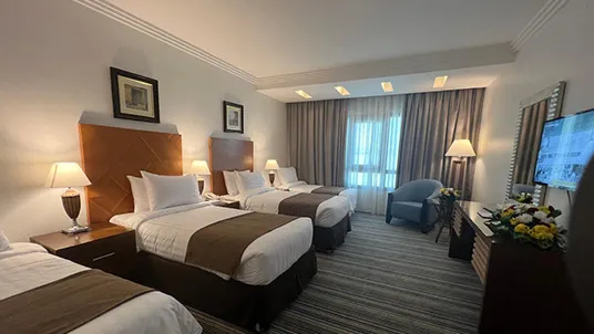 This Makkah hotel offers air-conditioned rooms with private bathrooms featuring complimentary toiletries, plush bathrobes, and stunning city views. Each room includes a bidet, shower, television, and electric kettle for added comfort. Guests can savor a buffet breakfast and enjoy halal dishes at the on-site restaurant, while the bar provides a relaxing space for evening drinks. Free WiFi is available throughout the property. Located less than a kilometer from Masjid Al Haram and the Zamzam Well, the hotel is about 94 kilometers from King Abdulaziz International Airport. Popular nearby attractions include the Makkah Museum and the Cave of Hira. The property also offers 24-hour front desk service, round-the-clock security, room service, and paid private parking, with multilingual staff fluent in Arabic, English, and Urdu.